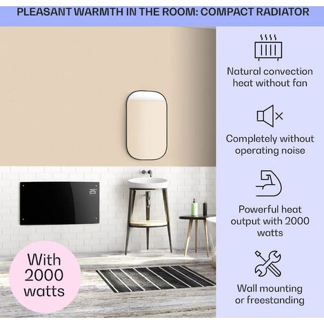 BRING WARMTH AND ELEGANCE INTO YOUR HOME: Our indoor electric heaters create a warm atmosphere in your home. The Klarstein 2000W low energy convector heater ensures an even distribution of heated air in any room without emitting CO2 or excessive noise.