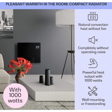 BRING WARMTH AND ELEGANCE INTO YOUR HOME: Our indoor electric heaters create cuddly feelings and a cosy warmth for slipper and pyjama wearers. The Klarstein 1000W low energy convector heater ensures an even distribution of heated air in any room.