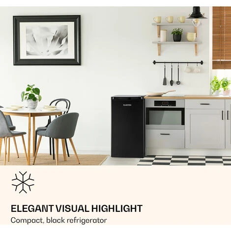 - Stylish eye-catcher: Compact black refrigerator