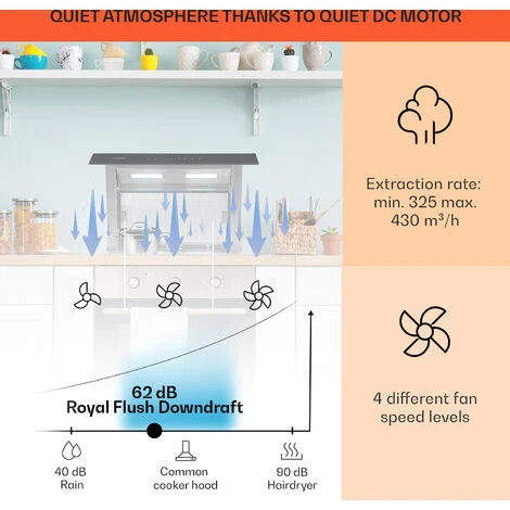 A STRONG FAN THAT NEVER DISTURBS: With a powerful 507m³/h airflow rate and 4 fan speeds, our cooker hood reduces odours and filters fumes for better air quality. It does this while operating quietly so you can cook alongside cooking videos.