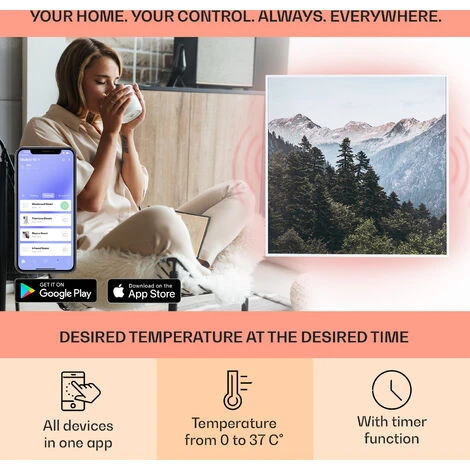 SMART APP CONTROLS WHEREVER YOU ARE: Our app lets you set the desired temperature from your phone wherever you are via WiFI. You can even program one or more infrared heaters to turn on at certain times to return to a warm home or to save energy.