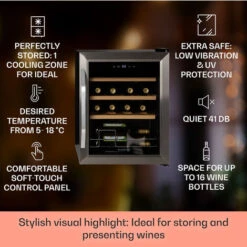 Klarstein Vinamour 16 Uno Wine Fridge 16 Bottles/42 Litres 5-18°C 41dB Glass