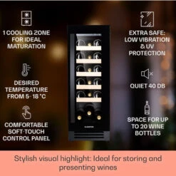 Klarstein Vinamour 19 Uno Wine Fridge 19Fl./65l 4-18°C 40dB Glass
